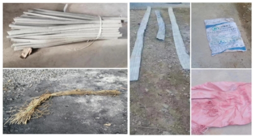 原使用:三角密封条、稻草捆     现使用:废弃收尘袋、 废弃水泥袋 、废弃外加剂袋?