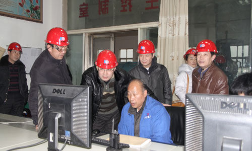2014年2月17日下午,市发改委副主任王唯实一行在县发改委有关领导的陪同下到大地公司调研。 王主任一行详细了解了大地公司当前的生产经营状况,市场价格,销售形势等,并在公司总经理王永普等领导的陪同下,深入到烧成车间、余热发电站等生产一线进行实地察看。在余热发电主控室,王主任一行与工作人员进行现场交谈,了解余热发电的设备原理和工艺技术。通过参观,王主任一行对公司在水泥销售淡季,能够及时采取措施,出现经营平稳,淡季不淡的良好状况表示满意。
